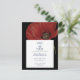 A modern look with a single red poppy on a black background. You will personalize this save the date card with the bride and groom's names, date of wedding and location.