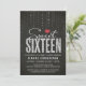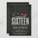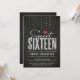 Modern Black Red & Silver Glitter Sweet 16 Invitation