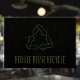Make a bold eco-friendly statement with this modern Reduce Reuse Recycle window cling featuring a sleek black background and clean green recycle icon. Perfect for zero-waste stores, sustainable cafés, green businesses, and recycling centers looking to inspire customers with a stylish and professional message. This durable cling applies easily and leaves no residue—ideal for storefronts, doors, or windows. A must-have display for any environmentally conscious business.