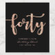 Minimalist 40th birthday black and rose gold wine bottle label in modern, chic and elegant typography style. Featuring age "forty" in sparkly rose gold. Customise with age, name, and year of birth.