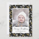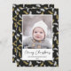 Modern Black Script Gold Pine Mistletoe Christmas Holiday Card