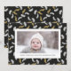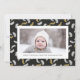 Modern Black Script Gold Pine Mistletoe Christmas Holiday Card