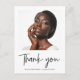 Modern script lettering black and white graduation one photo thank you postcard features trendy thankful hand script and one photo with a custom personalized thank you message and return address on the back of the simple and chic high school and college graduate thank you card.