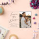 Get ready to announce your big day in style with this stunning Modern Black Script Photo Save the Date Card! Featuring a transparent acrylic background, this chic design showcases “Save the Date” in elegant black calligraphy, creating a sophisticated yet trendy look that perfectly complements modern weddings. Personalize this minimalist save the date with your names, wedding date, location, and a vertical engagement photo to add a personal touch. This acrylic save the date is a perfect choice for couples who want to make a lasting impression and set the tone for a stylish, contemporary wedding celebration.