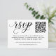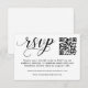 Make it simple for guests to reply with this RSVP card featuring bold calligraphy script and a scannable QR code. The design directs guests to your wedding website to respond online or send an email, with space for your URL, email address, and reply deadline. Customize all text and QR code to fit your wedding communication needs.