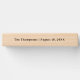 Custom giant wooden topple tower game features a modern black script monogram of the newlywed couple's first names on one side of the block, along with serif text that can be personalized with their last name and wedding date on the other side. Black design color can be modified. Makes a fun game for guests to play at the wedding reception and a thoughtful keepsake gift for the couple to use for entertaining.