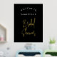 Modern Black Calligraphy Script Welcome Bridal Shower Real Gold Foil Prints Poster. Customize it with your name of choice, put it in a frame or on cardboard to hang in a metal frame or put it on an easel. Background color can be changed in the design tool if needed.