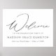 Elegant graduation sign featuring "Welcome" in a black modern calligraphy script with a white background (or color of your choice). Personalize the modern graduation poster by adding the graduate's name, school name, and graduation year. The black and white graduation sign is perfect for both high school and college graduates.