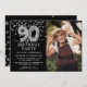 Modern Black & Silver 90th Surprise Birthday Photo Invitation