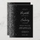 Modern Black Silver Faux Glitter Edge Wedding Invitation