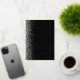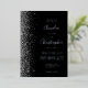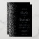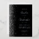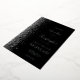 The left-hand edge of this elegant modern wedding invitation features a silver faux glitter design. The customizable text combines real silver foil handwriting, copperplate and italic fonts on a black background. The reverse side features a matching black and silver glitter design.