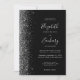 The left-hand edge of this elegant modern wedding invitation features a silver faux glitter design. The customizable text combines silver gray handwriting, copperplate and italic fonts on a black background. Add your favorite photo to the reverse side, along with additional text and a QR code to send guests to your wedding website.