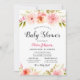 Modern Black Stripe Pink Floral Girl Shower Invitation