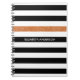 Personalize this modern wide horizontal black and white stripes pattern notebook with a glitzy orange glitter-like stripe by adding the name of any girly girl. This trendy graphic striped pattern is perfect for the chic fashionista. Flat printed image, NOT actual glitter.