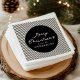 Elevate your holiday entertaining with these Modern Black Stripes Christmas Napkins. The design showcases “Merry Christmas” in a handwritten cream script with your family name displayed below in coordinating serif text, encircled by a black frame on a chic black and cream striped background. Perfect for Christmas parties, dinners, or seasonal events, these napkins complement other products in our Modern Stripes Christmas Collection for a coordinated holiday look.