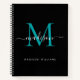Modern Black Teal Green Girly Monogram Script Name Notebook