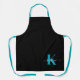Modern Black Teal Script Monogram Apron