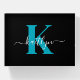 This simple, elegant black paperweight with your first name in a trendy script font in white typed over your first initial in a modern cap font in teal is perfect for your desk, dresser, end table. It's stylish and trendy and yet very classic.