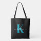 This simple, elegant black tote bag with your first name in a trendy script font in white typed over your first initial in a modern cap font in teal is perfect for carrying office work, school work, books, craft projects, anything at all. It's stylish and trendy and yet very classic.