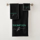 Modern Black Teal Simple Script Monogram Name Bath Towel Set