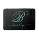 Modern Black Turquoise Handwritten Monogrammed Bath Mat