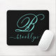 Modern Black Turquoise Handwritten Monogrammed Mouse Pad