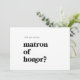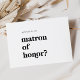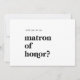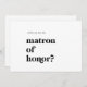 This modern black typography matron of honor proposal card is perfect for a simple wedding. The black and white minimalist design features a retro yet contemporary font with a unique rustic bohemian feel. Perfect for any season. Keep it minimal, as is, or add your own graphics and artwork. Customize the card with the name of the bride and the bridesmaid. Personalize the back of the card with a personalized message.