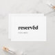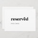 This modern black typography reserved sign is perfect for a simple wedding. The card is double sided (prints on both sides). The black and white minimalist design features a retro yet contemporary font with a unique rustic bohemian feel. Perfect for any season. Keep it minimal, as is, or add your own graphics and artwork. Use these cards to reserve chairs or tables at your wedding ceremony, reception or any event.