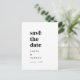 This modern black typography save the date postcard is perfect for a simple wedding. The black and white minimalist design features a retro yet contemporary font with a unique rustic bohemian feel. Perfect for any season. Keep it minimal, as is, or add your own graphics and artwork.