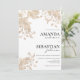 Plain white envelopes are included with paper invitations and will come to fit the invitation size you select. If you don’t need the envelopes, you may choose to not receive them by selecting the dropdown below "Envelopes" and choosing "None." If you’d like to have a design on your envelopes, you can browse all of these available envelopes to find the design that complements your Modern Black Typography White Gold Floral Wedding Invitation.