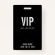 Modern black VIP all access pass badge with QR code. This custom minimalist badge features a bold font and modern black and white design. Perfect for concerts, events, staff and crew.