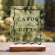 Add a stylish touch to your wedding, bridal shower, baby shower, graduation party, or other special event with this Modern Black Wavy Frame cards and gifts sign. The design features "Cards and Gifts" in bold black lettering surrounded by a black wavy border with a clear background. Personalize the retro cards and gifts acrylic sign with your custom text below. Please note: The wooden stand in the product mockup photo does not come with the sign. Zazzle sells a similar wood block for an additional cost.