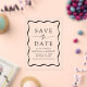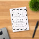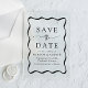 Get ready to announce your big day with elegance using our Modern Wavy Frame Acrylic Wedding Save the Dates! This unique design pairs your names and wedding details with a striking black wavy frame, creating a perfect contrast against the transparent acrylic background. The result is a captivating blend of modern style and retro charm, making each save the date card a treasured keepsake. Crafted to reflect the beauty of your love story, this timeless design ensures your guests will remember your wedding announcement as a stunning introduction to your celebration.