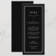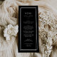 This wedding menu from the Avery Suite features a dark black background, a slim white double frame, and clean sans serif type. It creates a modern, polished look suited to city venues, galleries, and evening weddings.