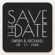features phrase "Save the Date" with name and wedding date in white modern font style on black background.