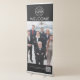 Modern black corporate welcome sign retractable banner with your business logo, a scannable QR code, and a large photo. Includes space at the bottom to add your website, slogan, or any text needed.