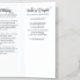 Black and white celebration of life tri-fold funeral program with photo is a refined, modern-classic template that balances elegant typography with clear organization for a dignified memorial. The cover features a photo of your loved one paired with graceful calligraphy script for “A Celebration of Life,” while the name and dates in a clean serif font for crisp readability. A second photo appears on the inner flap, creating a cohesive two-photo narrative that keeps your loved one at the heart of the design. Inside, three panels present the order of service, an obituary section, and words of comfort with generous white space. An acknowledgments page offers room to thank supporters and share reception details, maintaining the same polished style. The monochrome palette, transitional serif and contemporary calligraphy pairing deliver a timeless look that prints cleanly. Designed to guide guests through the ceremony while preserving cherished memories, this photo funeral program suits modern minimalist, transitional, and contemporary calligraphy styles and becomes a lasting keepsake for family and friends.