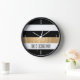 Modern Black White and Gold Striped Clock