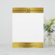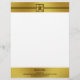 At the top, there's a display initial you can change to show the correct monogram. The black letter is inside a faux gold square that has a black border. Two black lines are behind the square. At the bottom, there are four lines of black display text for your custom text such as a name, professional title, address, phone number, website, or email address. The faux gold elements are not made of foil.