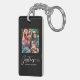 This modern photo keychain for best friends features two photos for you to change to your own on a simple black background with the Title "Bestie" and your names to personalize in white script. Placeholder images generated with AI.