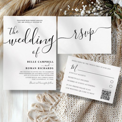 Modern Black & White Calligraphy Wedding Invitation Belly Band