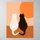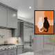 Modern Black & White Cat Pair, Orange Kitchen Poster