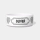 Modern White & Black Dog Bowl with Hearts & Custom Name Plate. Simple clean design works in any decor.