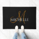 Modern Black White Custom Monogram Script Name Doormat