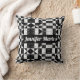 Modern Black & White Floral Pattern Custom Name Throw Pillow