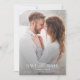 Send your engagement announcements in style with this simple, modern photo wedding Save the Date, featuring a hand lettered script typography. Your light colored engagement photo takes pride of place on the front, and is displayed behind white overlay text. The back features all the wedding announcement information, including your wedding website, in black type. Copyright Elegant Invites by Anastasia Surridge, all rights reserved.