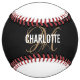 Modern black white gold script monogram female name softball. Personalize name and initial.
