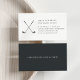 Simple and professional design for golf pros or golf instructors features a pair of crossed putters with your name, title and contact details alongside in soft off-black lettering on a white background. Personalize the back with a single line of custom text in the opposite colorway.