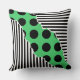 Modern Black, White & Green Layered Stripes Dots Throw Pillow