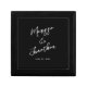 These personalized modern wedding gift box feature the bride and grooms names and wedding date in hand lettered script on a simple back background. Please check out our I Love Weddingz shop to find more selections in this collection. Designed by Susan Coffey.